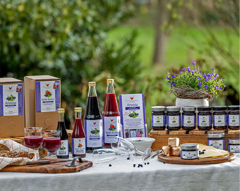 Die Aroniabeere ist nicht nur gesund, sie schmeckt auch noch sehr gut. Sie hat einen natürlich herben Geschmack. Die frischen Beeren eignen sich super als gesunden Snack zwischendurch oder im Obstsalat, Müsli oder Rotkohl. Ein Großteil der Beeren wird zu einem Direktsaft mit 100% Fruchtgehalt verarbeitet. Aber auch Marmeladen und Chutney werden aus der Aroniabeere von Hand produziert. Liane Duden vermischt die hofeigenen Beeren mit anderen ausgewählten Zutaten. So entstehen immer wieder neue Sorten.