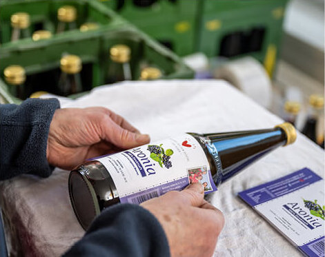 Die Aroniasträucher werden mit viel Handarbeit nach biologischen Grundsätzen gepflegt. Erst wenn der Zuckergehalt in den Beeren stimmt, wird geerntet. Im Anschluss werden die frischen Beeren in einer Mosterei in der Region zu Saft verarbeitet. So bleiben die Transportwege kurz. Zusätze kommen nicht in die Flasche.