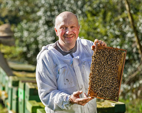 Dirk Klindworth ist schon seit klein auf begeistert von der Bienenzucht. Bereits sein Vater hielt Bienen und produzierte Honig für den Eigenverbrauch. Die Liebe zur Natur und das Interesse an den Tieren wurde Klindworth sozusagen in die Wiege gelegt. Aus fünf Völkern sind inzwischen mehr als 60 Völker geworden. Auch die nächste Generation steht bereits: Die Söhne Jannis und Nils unterstützen tatkräftig bei den Bienenvölkern. Tochter Sarah und Ehefrau Alexandra sind für die Weiterverarbeitung und das Befüllen der Gläser zuständig.